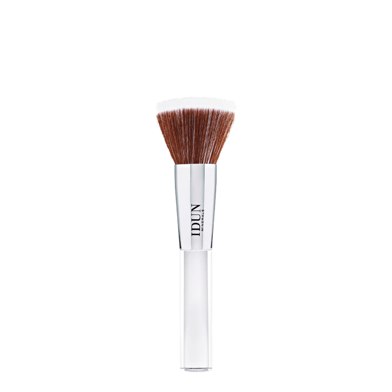 Dab the white bristle tips of your IDUN Minerals Stippling Brush into the product and gently swirl the brush in small circles into the skin allowing for the shorter bristles to blend the product to an airbrush finish.